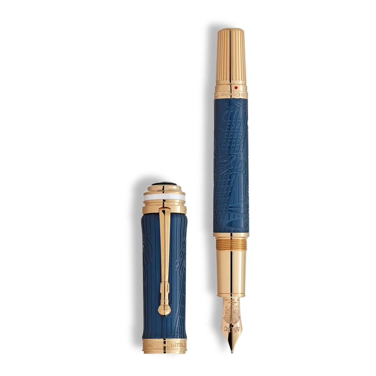 In der reichen Geschichte der Rockmusik gibt es nur wenige Namen, die so konstant glänzen wie der von Queen. Mit einer Karriere, die sich über fünf Jahrzehnte erstreckt, ist die Band eine der erfolgreichsten aller Zeiten. In dieser Zeit verkörperte Queen die Kraft musikalischer Kreativität, und die meisten ihrer Songs standen wochenlang an der Spitze der Charts. Sie schufen so etwas wie ihr eigenes musikalisches Universum, bestehend aus einer Kombination aus Hardrock, Glamrock, Pop, Funk und Oper, und sprengten damit die Grenzen zwischen den Genres. In Anlehnung an das Album „Greatest Hits II” von 1991 ehrt Montblanc mit der Sonderedition „Great Characters Homage to Queen” eines der erfolgreichsten Alben von Queen. In Anlehnung an die auffällige Farbkombination der Doppel-LP „Greatest Hits II“ erscheint die Edition in Dunkelblau mit vergoldeten Beschlägen. Die vier Musiker hinter dem Sound dieses legendären Compilation-Albums sind in die Geschichte eingegangen: Freddy Mercury, der charismatische Frontmann mit einer Stimmlage, die mehrere Oktaven umfasste und von einem reichen Vibrato geprägt war; Brian May, der virtuose Gitarrist mit seinem unverwechselbaren E-Gitarrensound; John Deacon, der vielseitige und kreative Bassist; und Roger Taylor, das rhythmische Herz der Band. Als Zeichen ihrer musikalischen Virtuosität, die das Album von 1991 zu einem der meistverkauften und bekanntesten der Welt machte, sind ihre „Werkzeuge” auf subtile Weise auf dem kostbaren Harz verewigt: Mikrofon und Bass auf der Kappe; Gitarre und Schlagzeug auf dem Zylinder. Auf ihrem Album Greatest Hits II präsentierte die Band eine breite Auswahl ihrer Chart-Hits, von Rock-Hymnen bis hin zu eingängigen Popsongs – darunter Kult-Songs wie A Kind of Magic, Klassiker wie Radio Ga Ga und The Show Must Go On, das mitreißende I Want to Break Free oder das ergreifende Under Pressure, eine Zusammenarbeit mit David Bowie. Neben Freddy Mercurys Stimme war das herausragende Gitarrenspiel von Brian May der Schlüssel zum besonderen Sound der Band. Das Schreibgerät ehrt ihn und seine Virtuosität durch die Form der Spitze. In Anlehnung an die charakteristischen Lautstärke- und Klangregler seiner berühmten E-Gitarre ist der Konus mit einem zarten Rillenmuster, einem kleinen roten Punkt sowie einer Gravur des Veröffentlichungsdatums des Albums „Greatest Hits II“ versehen.Die Krone, die Mercury während der Schlussdarbietung von „God Save The Queen“ trug, war die Inspiration für die Silhouette der Kappe der Special Edition und ist gleichzeitig eine Metapher für den majestätischen Charakter der Band und ihr musikalisches Vermächtnis. Der goldbeschichtete Clip ist einem Mikrofonständer nachempfunden und verweist damit auf eines der Markenzeichen von Freddie Mercurys Live-Auftritten.
