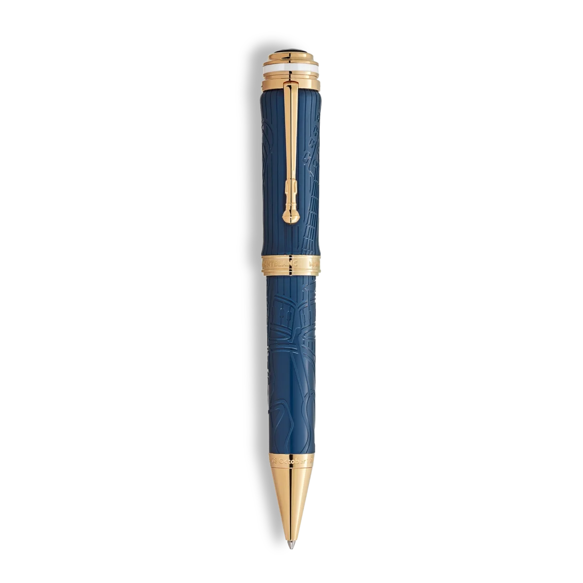 In der reichen Geschichte der Rockmusik gibt es nur wenige Namen, die so konstant glänzen wie der von Queen. Mit einer Karriere, die sich über fünf Jahrzehnte erstreckt, ist die Band eine der erfolgreichsten aller Zeiten. In dieser Zeit verkörperte Queen die Kraft musikalischer Kreativität, und die meisten ihrer Songs standen wochenlang an der Spitze der Charts. Sie schufen so etwas wie ihr eigenes musikalisches Universum, bestehend aus einer Kombination aus Hardrock, Glamrock, Pop, Funk und Oper, und sprengten damit die Grenzen zwischen den Genres. In Anlehnung an das Album „Greatest Hits II” von 1991 ehrt Montblanc mit der Sonderedition „Great Characters Homage to Queen” eines der erfolgreichsten Alben von Queen. In Anlehnung an die auffällige Farbkombination der Doppel-LP „Greatest Hits II“ erscheint die Edition in Dunkelblau mit vergoldeten Beschlägen. Die vier Musiker hinter dem Sound dieses legendären Compilation-Albums sind in die Geschichte eingegangen: Freddy Mercury, der charismatische Frontmann mit einem Stimmumfang von mehreren Oktaven und einem reichen Vibrato; Brian May, der virtuose Gitarrist mit seinem unverwechselbaren E-Gitarrensound; John Deacon, der vielseitige und kreative Bassist; und Roger Taylor, das rhythmische Herz der Band. Als Zeichen ihrer musikalischen Virtuosität, die das Album von 1991 zu einem der meistverkauften und bekanntesten der Welt machte, sind ihre „Werkzeuge” auf subtile Weise auf dem kostbaren Harz verewigt: Mikrofon und Bass auf der Kappe; Gitarre und Schlagzeug auf dem Zylinder. Auf ihrem Album „Greatest Hits II“ präsentierte die Band eine breite Auswahl ihrer Chart-Hits, von Rock-Hymnen bis hin zu eingängigen Popsongs – darunter Kult-Songs wie „A Kind of Magic“, Klassiker wie „Radio Ga Ga“ und „The Show Must Go On“, das mitreißende „I Want to Break Free“ oder das ergreifende „Under Pressure“, eine Zusammenarbeit mit David Bowie. Neben Freddy Mercurys Stimme war das herausragende Gitarrenspiel von Brian May der Schlüssel zum besonderen Sound der Band. Das Schreibgerät ehrt ihn und seine Virtuosität durch die Form der Spitze. In Anlehnung an die charakteristischen Lautstärke- und Klangregler seiner berühmten E-Gitarre ist der Konus mit einem zarten Rillenmuster, einem kleinen roten Punkt sowie einer Gravur des Veröffentlichungsdatums des Albums „Greatest Hits II“ versehen.Die Krone, die Mercury während der Schlussdarbietung von „God Save The Queen“ trug, war die Inspiration für die Silhouette der Kappe der Special Edition und ist gleichzeitig eine Metapher für den majestätischen Charakter der Band und ihr musikalisches Vermächtnis. Der goldbeschichtete Clip ist einem Mikrofonständer nachempfunden und verweist damit auf eines der Markenzeichen von Freddie Mercurys Live-Auftritten.