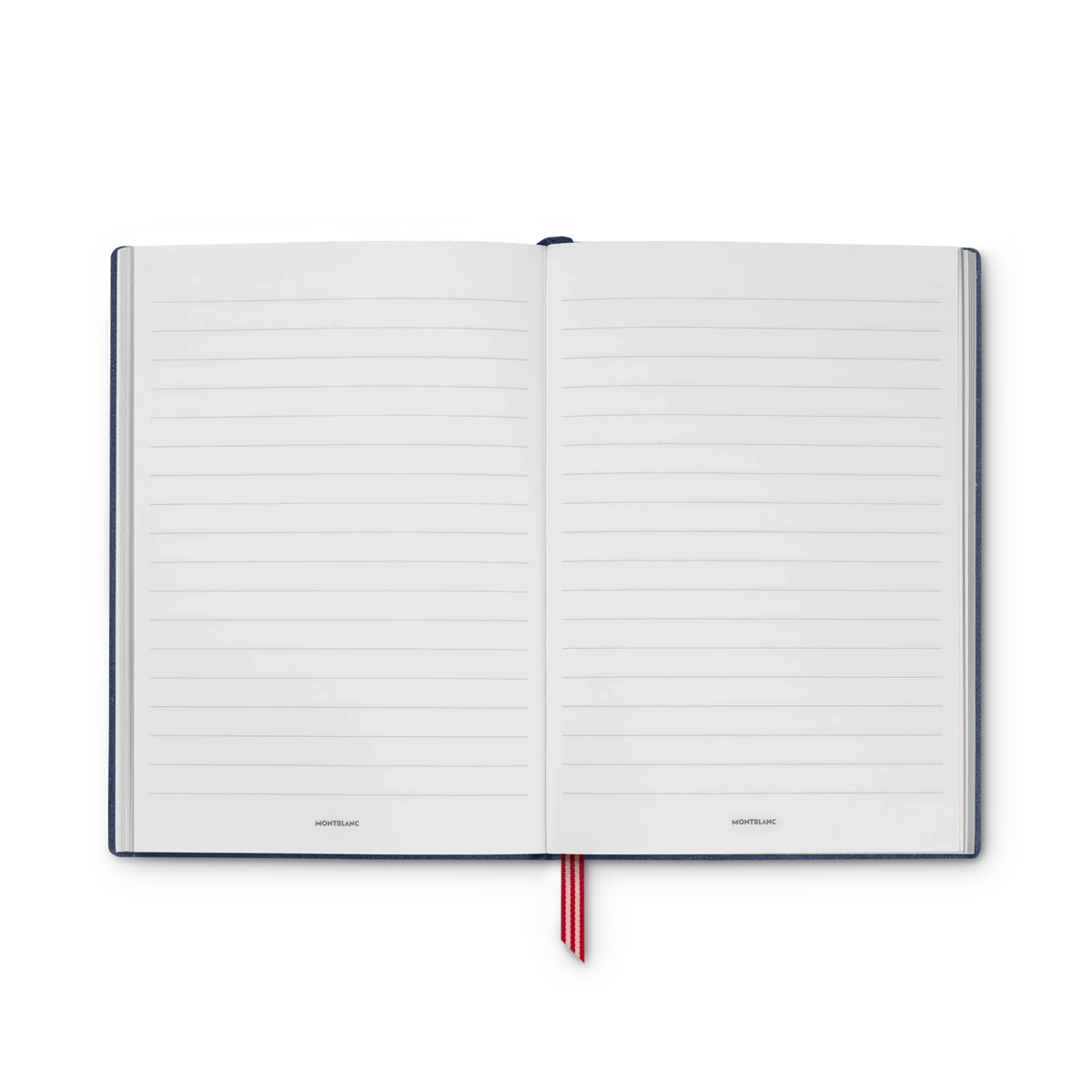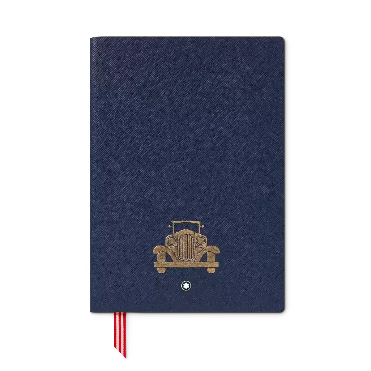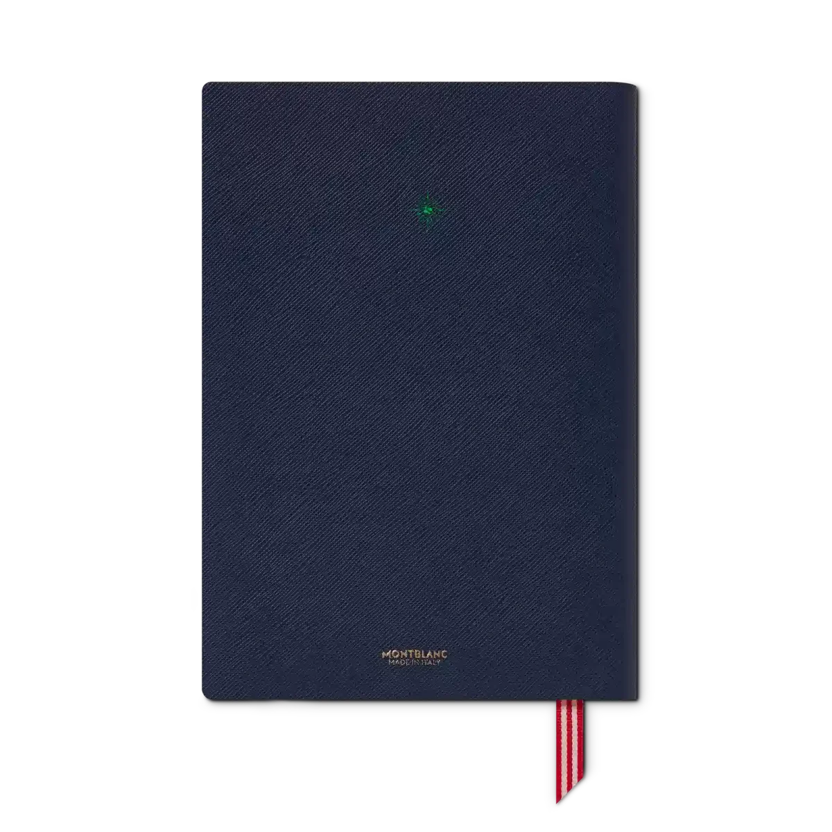 Montblanc Notizbuch Nr. 146 – klein, Great Characters Hommage an The Great Gatsby Kollektion aus blauem Leder mit Aufdruck und goldenem Karomuster. Hergestellt in Italien. 96 Blatt / 192 Seiten. Maße 150 x 210 mm.