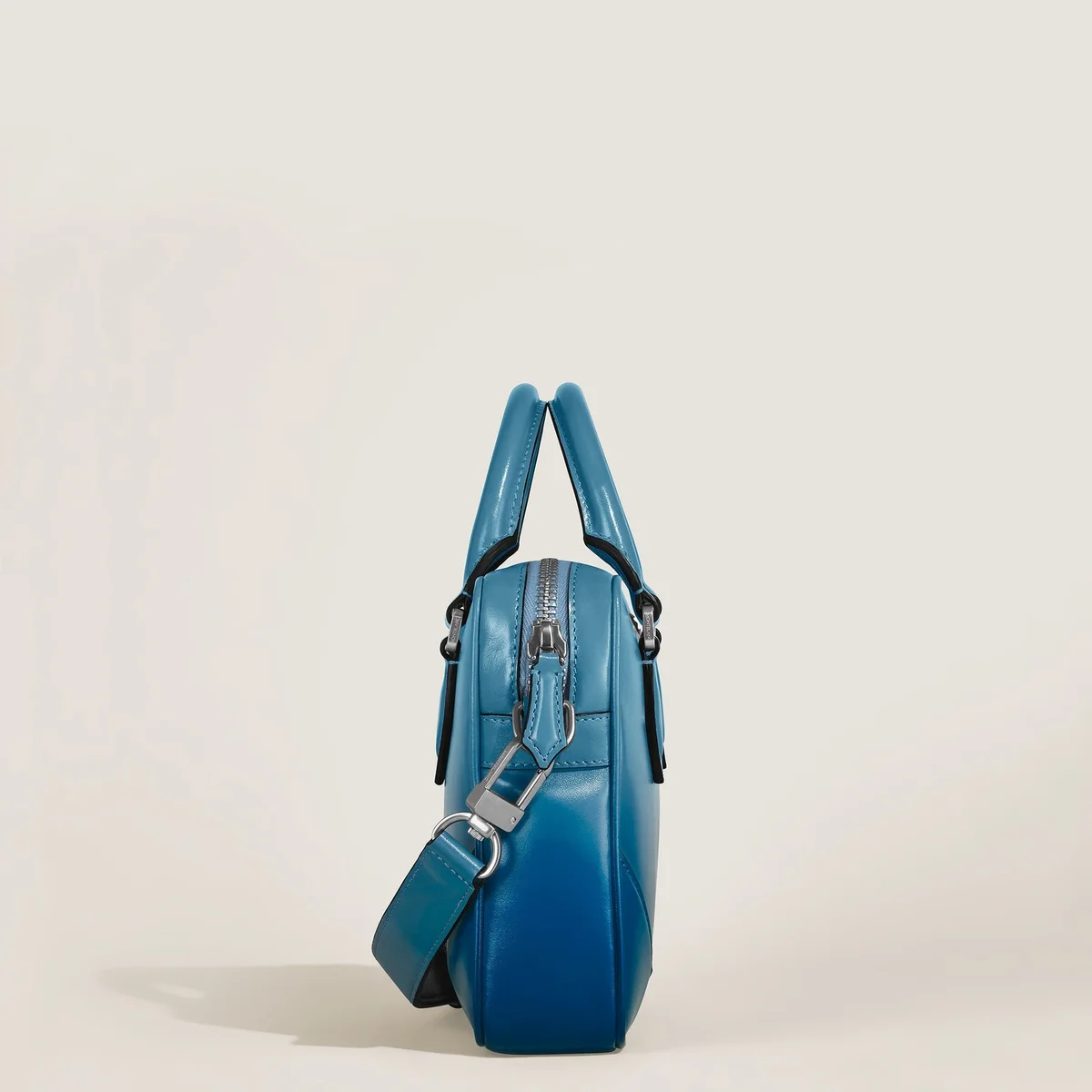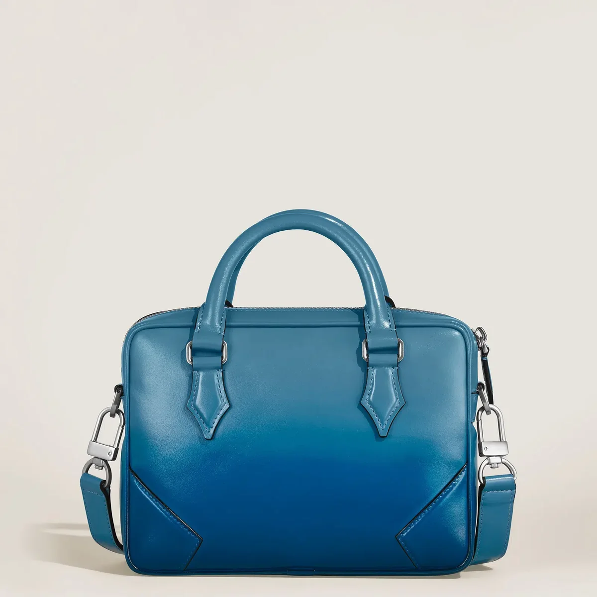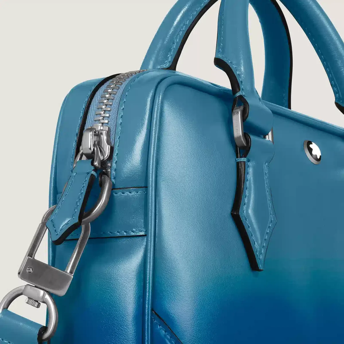 Die Meisterstück Mini-Dokumententasche, handgefertigt aus weichem Leder in wunderschönem Rauchblau, bietet ein außergewöhnliches Trageerlebnis. Es ist mit einem manuell aufgebrachten Sfumato-Effekt veredelt und verfügt über ein Hauptfach für Dinge des täglichen Bedarfs sowie eine Reißverschlusstasche zur Aufbewahrung kleinerer Gegenstände. Ident-Nr. MB199274 Abmessungen 230 mm * 50 mm * 170 mm