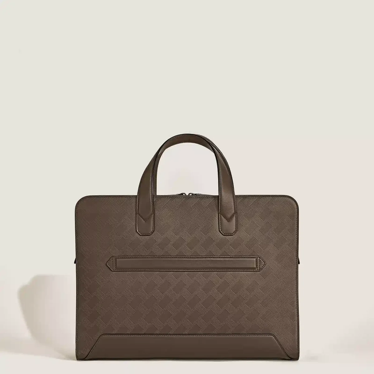 Diese schlanke Dokumententasche wurde für den modernen urbanen Berufstätigen entworfen und verbindet nahtlos Funktionalität mit raffiniertem Stil. Sie ist aus noisettefarbenem Leder mit dem ikonischen Extreme 3.0-Motiv gefertigt und besticht durch ein unverwechselbares Design, das durch elegante schwarze Metallbeschläge akzentuiert wird. Sie ist ideal für den täglichen Gebrauch und für Geschäftstermine und bietet reichlich Platz für Dokumente im A4-Format, Schreibutensilien und andere wichtige Dinge. Eine Reißverschlusstasche und zwei Stifthalter sorgen für eine übersichtliche Organisation.