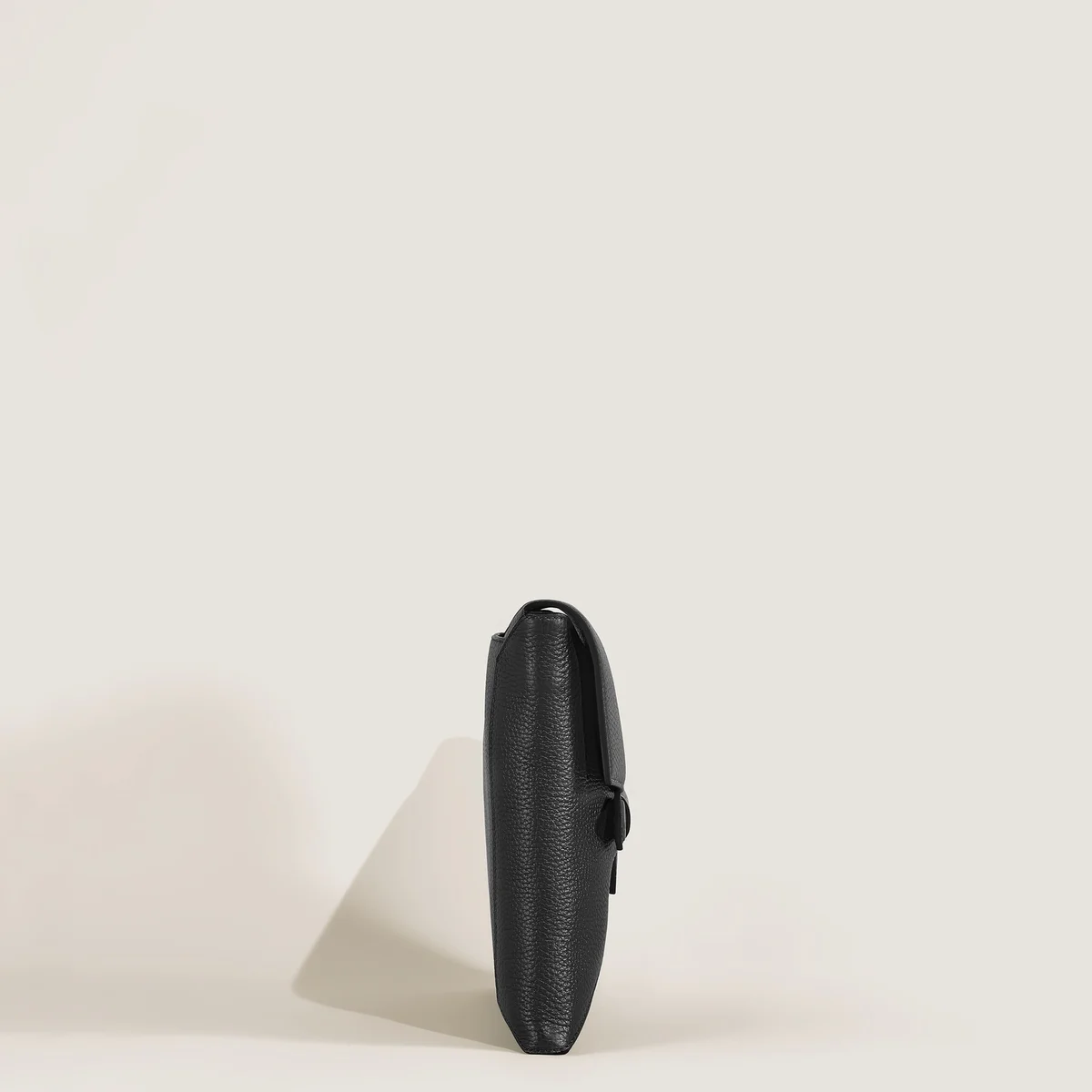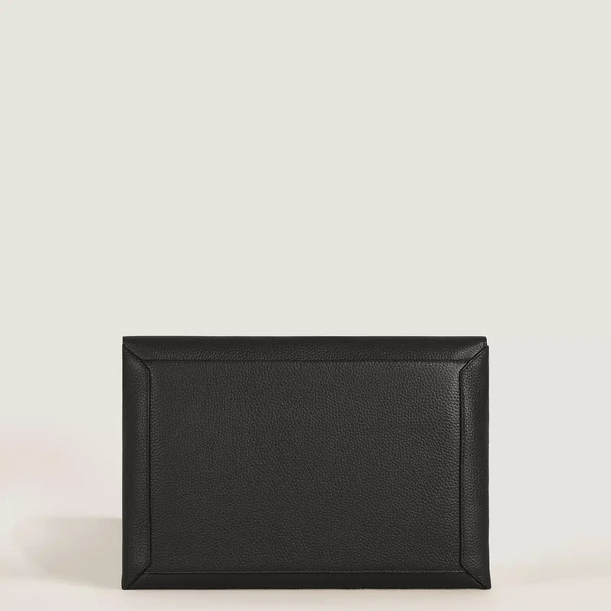 Dieser Dokumentenhalter wurde für alle entwickelt, die in jedem Aspekt ihres Lebens Eleganz suchen. Er ist aus schwarzem genarbtem Kalbsleder gefertigt. Seine schlanke, von einem Umschlag inspirierte Form wird durch einen spitzenförmigen Griff an der Vorderseite unterstrichen, der der Welt der modernen Accessoires einen Hauch von Montblanc-Tradition verleiht. Das Hauptfach verfügt über ein offenes Fach und zwei Stifthalterungen für eine gute Organisation, während das hintere Fach einen einfachen Zugriff auf wichtige Utensilien ermöglicht.