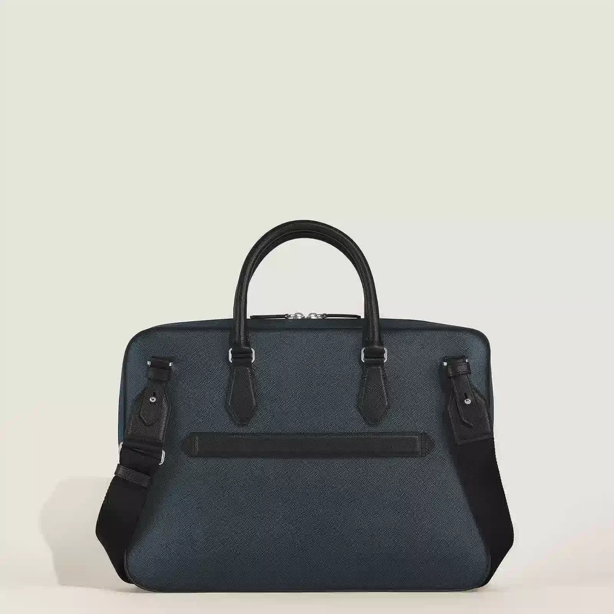 Diese schlanke Dokumententasche verbindet die Tradition der Schreibkunst von Montblanc mit eleganter, moderner Funktionalität. Sie ist aus zweifarbig geprägtem Sartorial-Leder in Schwarz und Blau gefertigt und speziell auf die Bedürfnisse von Geschäftsleuten zugeschnitten. Das geräumige Hauptfach bietet ausreichend Platz für A4-Unterlagen, elektronische Geräte und Schreibutensilien. Der abnehmbare, verstellbare Gurt bietet vielseitige Trageoptionen und macht die Mappe zu einer raffinierten und praktischen Wahl für Berufstätige.