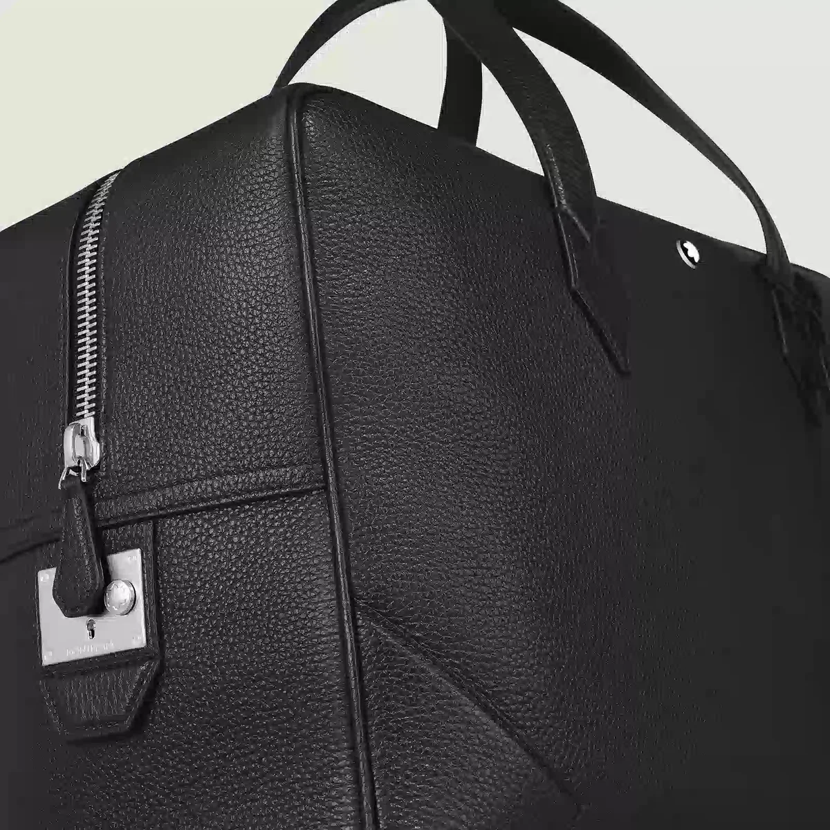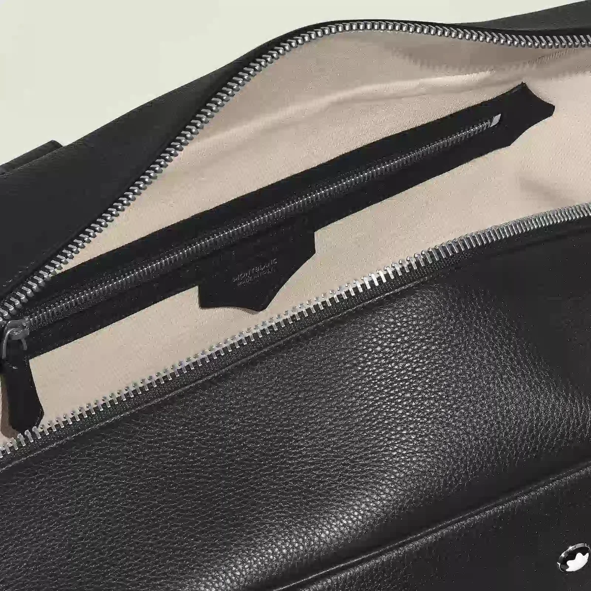 Die Montblanc 149 Tasche ist ein eleganter Begleiter für Kurztrips oder Wochenendausflüge und verfügt über einen geräumigen Innenraum, eine Reißverschlusstasche und zwei offene Fächer sowie eine spezielle Schlaufe für Ihr Schreibgerät. Die elegante Textur des weichen, genarbten Leders in Schwarz verleiht ihr einen Hauch von Luxus, während der externe Verschluss mit Schloss und Schlüssel für zusätzliche Sicherheit für Ihre Habseligkeiten sorgt.