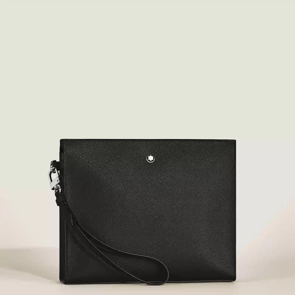 In dieser eleganten Sartorial-Tasche können Sie Ihre wichtigsten Alltagsgegenstände verstauen. Sie ist aus Saffiano-geprägtem Leder in elegantem Schwarz gefertigt und verfügt über ein zusätzliches offenes Fach im Hauptfach für noch mehr Komfort. Tragen Sie sie in der Hand, unter dem Arm oder mit dem abnehmbaren Griff um das Handgelenk.