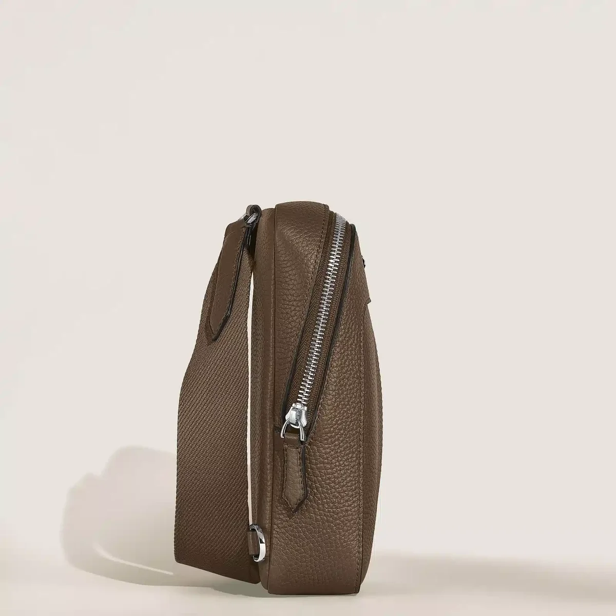 Die Alltagstasche ist aus geschmeidigem Noisette-Narbleder gefertigt und hat weiche, elegante Formen. Sie wurde für diejenigen entworfen, die mühelosen Luxus und leichten Zugriff schätzen. Sie eignet sich perfekt für einen lässigen Stil für unterwegs und verfügt über nibförmige Reißverschlüsse und ein Hauptfach mit drei Kartenfächern und einer offenen Tasche sowie eine Außentasche mit Reißverschluss für wichtige Utensilien. Mit ihrem abnehmbaren, verstellbaren Riemen bietet diese Tasche eine raffinierte Möglichkeit, Ihre Habseligkeiten griffbereit zu haben.