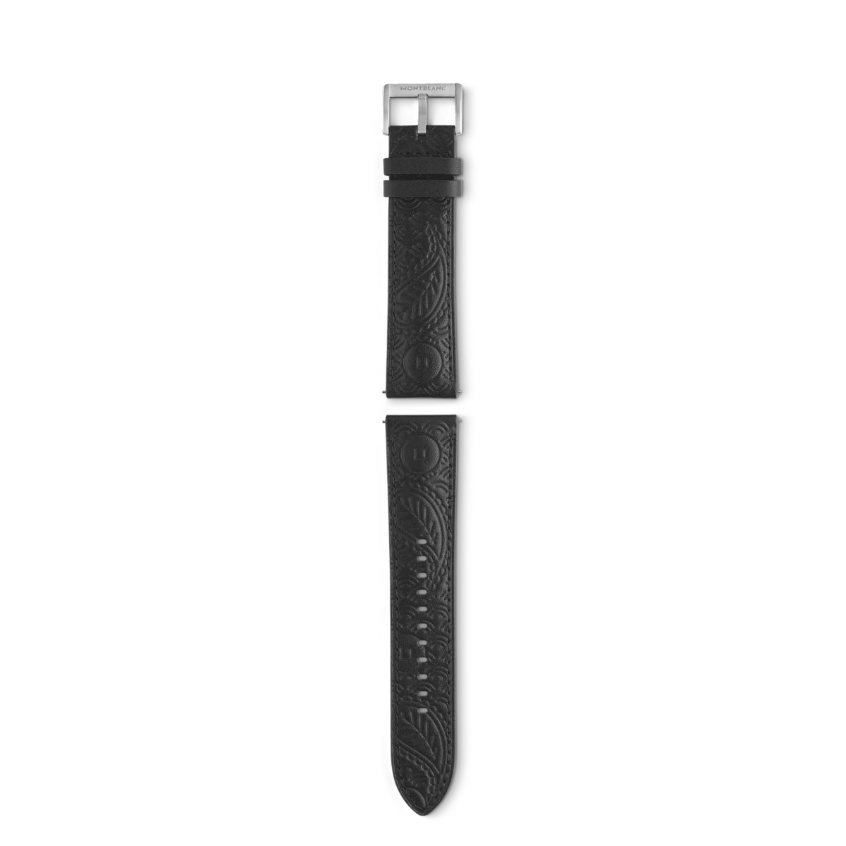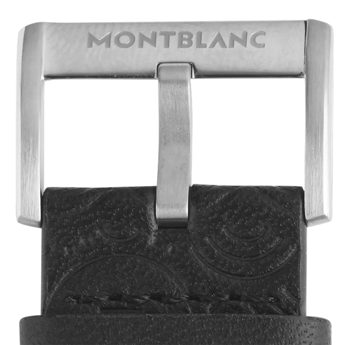 22 mm Kalbslederarmband mit Prägung im Design „In 80 Tagen um die Welt“, eine Hommage an den berühmten Roman von Jules Verne. Dieses besondere Muster ist inspiriert von den Abenteuern von Mr. Fogg und Passepartout auf ihrer Reise von Bombay nach Yokohama und enthält indische, chinesische und japanische Glückssymbole. Verstellbare Dornschließe aus Edelstahl. Kompatibel mit allen Montblanc Summit Smartwatches.