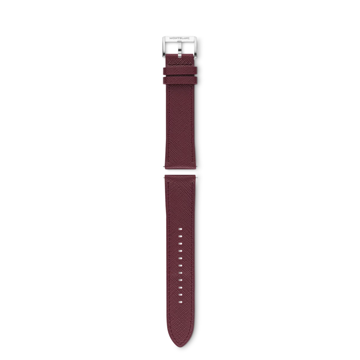 22 mm breites Armband aus burgunderrotem Kalbsleder mit Saffiano-Prägung und verstellbarer Dornschließe aus Edelstahl. Kompatibel mit allen Montblanc Summit Smartwatches.