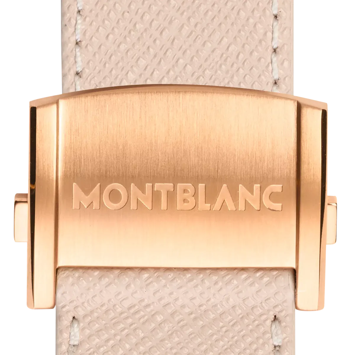 22 mm cremefarbenes Kalbslederarmband mit Saffiano-Prägung und verstellbarer goldfarbener Faltschließe aus Edelstahl. Kompatibel mit allen Montblanc Summit Smartwatches.