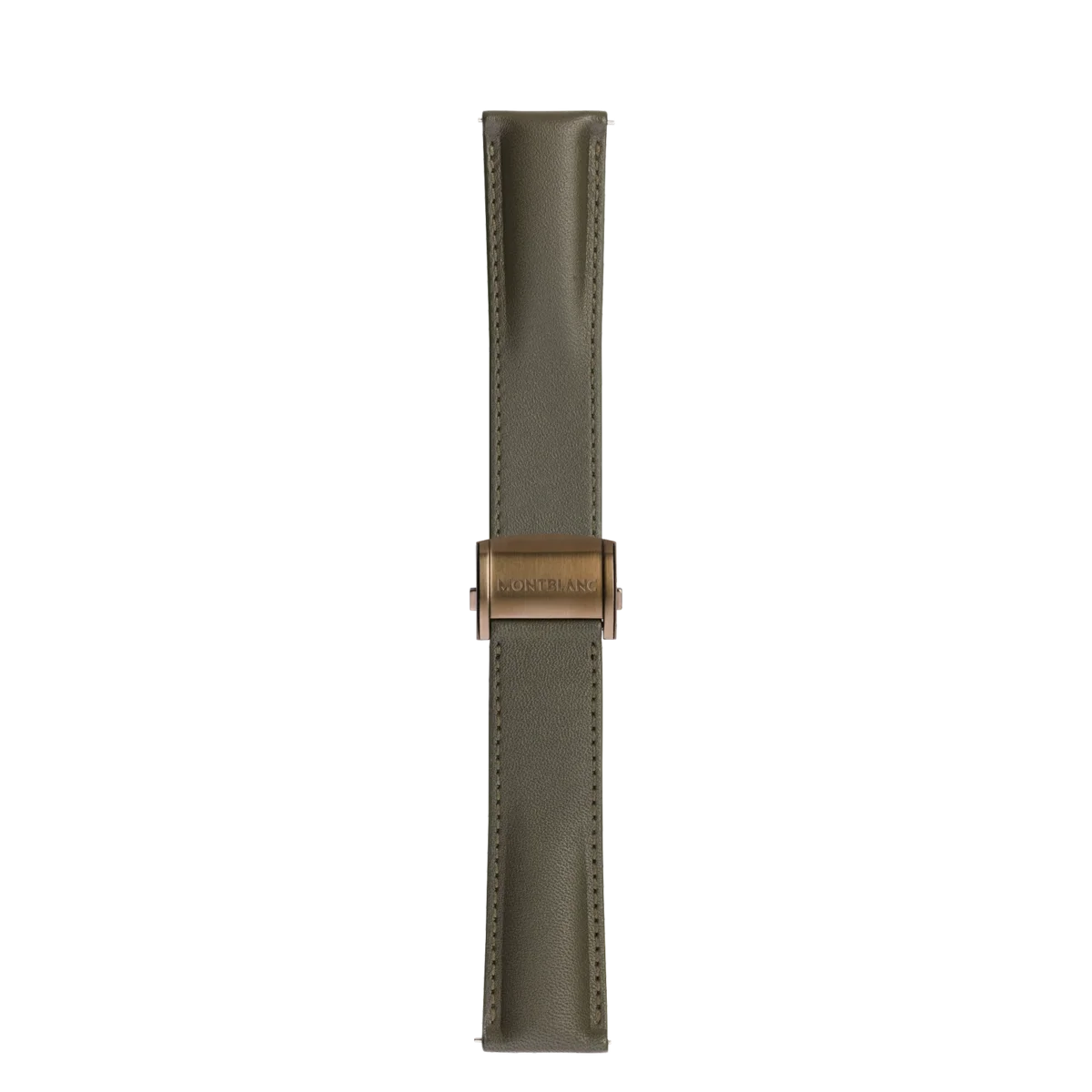 22 mm breites Armband aus khakifarbenem Kalbsleder mit verstellbarer bronzefarbener Faltschließe aus Edelstahl. Kompatibel mit allen Montblanc Summit Smartwatches.