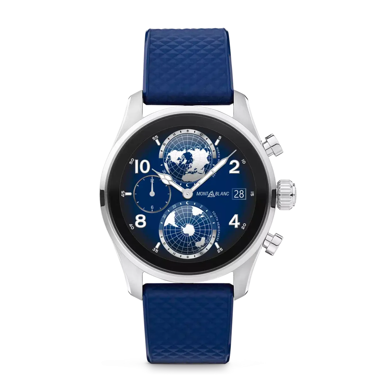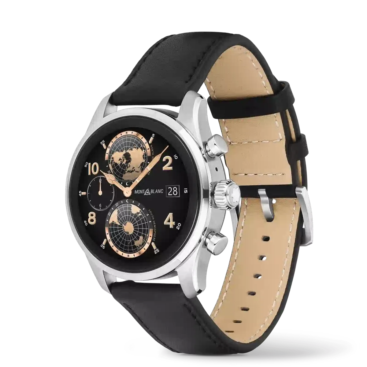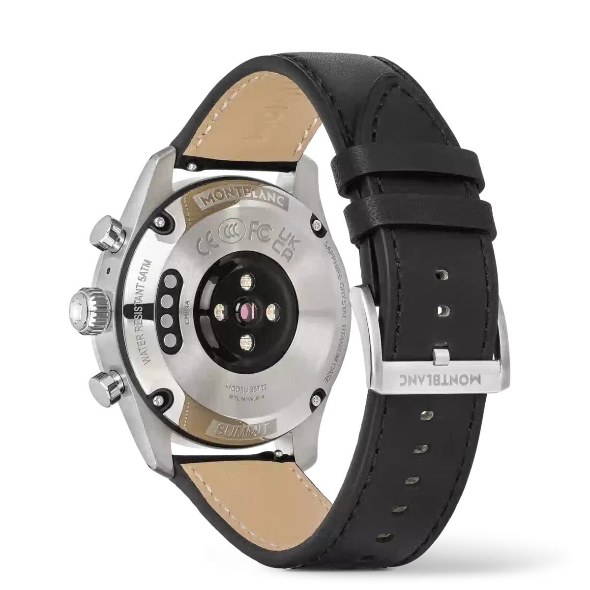 Begleit-App für Smartphones: Montblanc Summit. Erhältlich im App Store und Play Store. In der Verpackung In der Verpackung Summit 3 mit Gummi-Sportarmband, zusätzlichem Kalbslederarmband, Ladestation, USB-Kabel, Sicherheitshandbuch und Schnellstartanleitung.